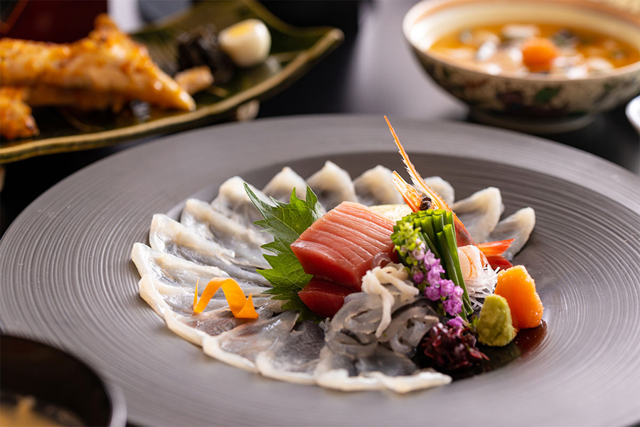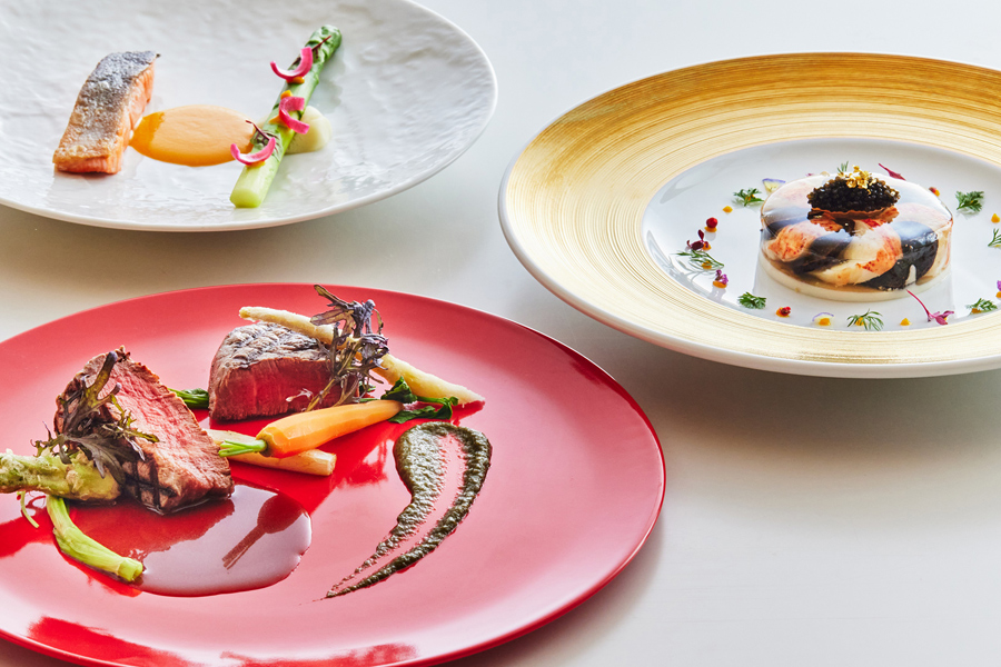 ナスパの大きな魅力は、居ながらにして様々なジャンルの一流シェフのメニューを頂けること。ホテルニューオータニ伝統の低温調理製法”ローストビーフ”をはじめ和・洋・スイーツの豊富なメニューを揃えるインターナショナルビュッフェ「O’s Dining」(写真)、魚沼地域や新潟の美味しさを堪能できるコース料理を愉しめる「フォンタナ」、贅を尽くした会席料理店「千羽鶴」(写真)、目の前の鉄板カウンターで焼き上げる鉄板焼「招月」の4つのレストランが、季節ごとのメニューを提供しています(※営業日を事前にご確認のうえ、ご予約をお願いいたします)。
