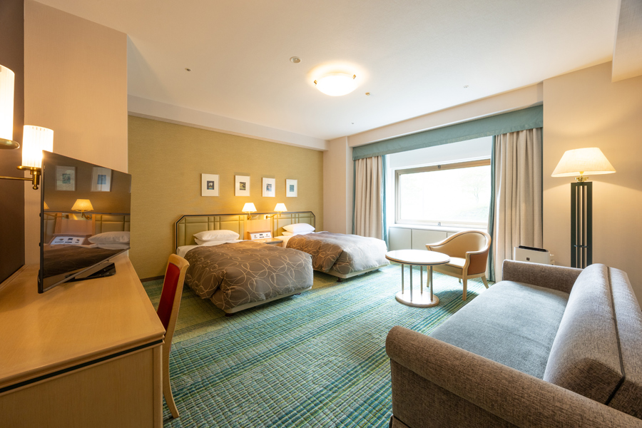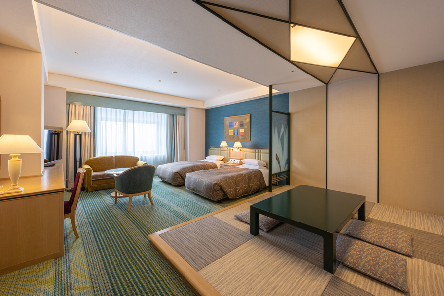 ゲストルームについては30階建てのガーデンタワー棟と11階建てのメイン棟に、あわせて17タイプの客室を用意。中には4ベッドを備えたスーペリアフォースやエグゼクティブフォース、ツイン、和室、和洋室(写真)、スイートルームの他、愛犬と一緒に宿泊できる「ペットフレンドリールーム」や、「ピングー」がコンセプトの「ピングールーム」など、さまざまなタイプの客室があります。