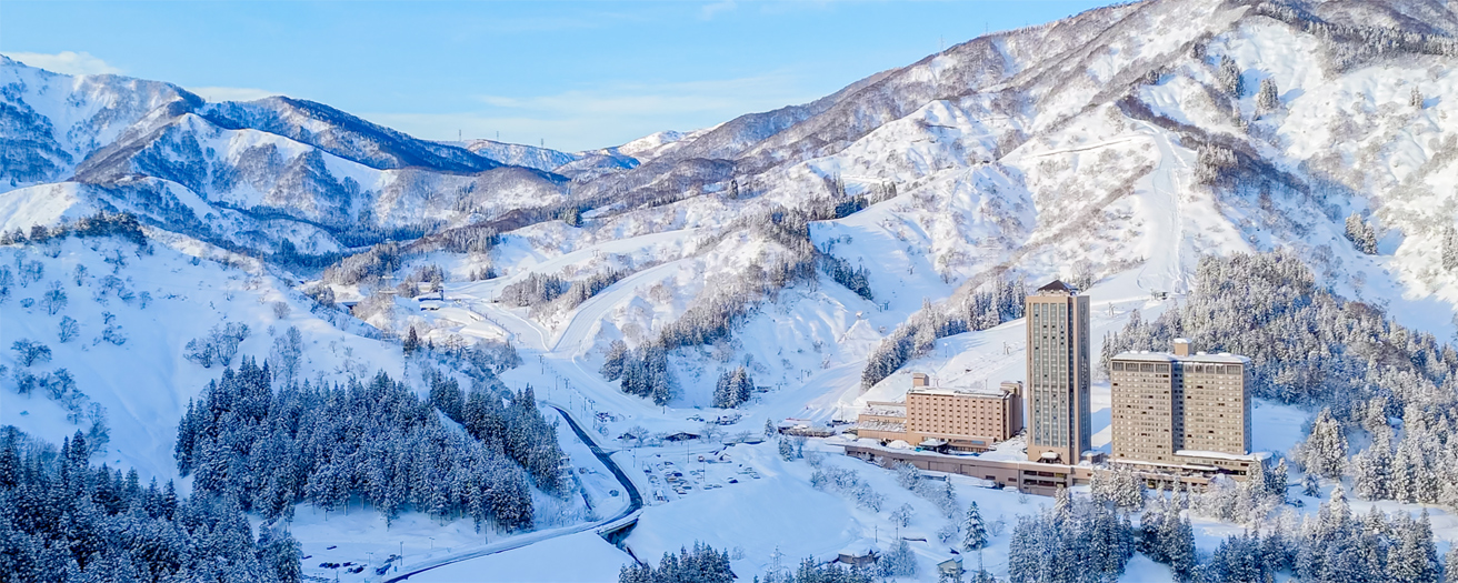 湯沢高原スキー場(車で5分)、神立スノーリゾート(車で7分)、岩原スキー場(車で8分)を始め多くのスキー場が周辺に点在するため、長期滞在してスキーもスノーボードも楽しめます。思う存分身体を動かした後は、天然温泉大浴場で汗を流し、一流シェフが厳選した旬の食材で創る料理を堪能できます。