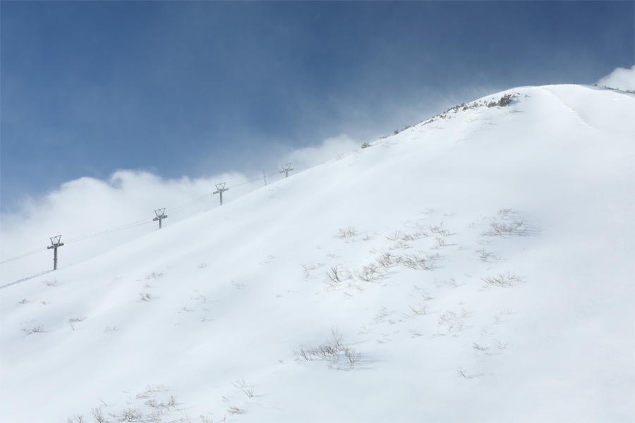 By the way, because strong winds forced all lifts to shut down around 10:30 a.m. yesterday, there was about 20cm of new, untouched snow remaining in the ungroomed areas. This morning, many early visitors headed for that fresh snow along the Kurobishi 3 Pair, beside the Alpen Quad, and into Sodeguro, which meant the slopes along the Kurobishi Quad (pictured) were left with beautifully clean, untracked surfaces.