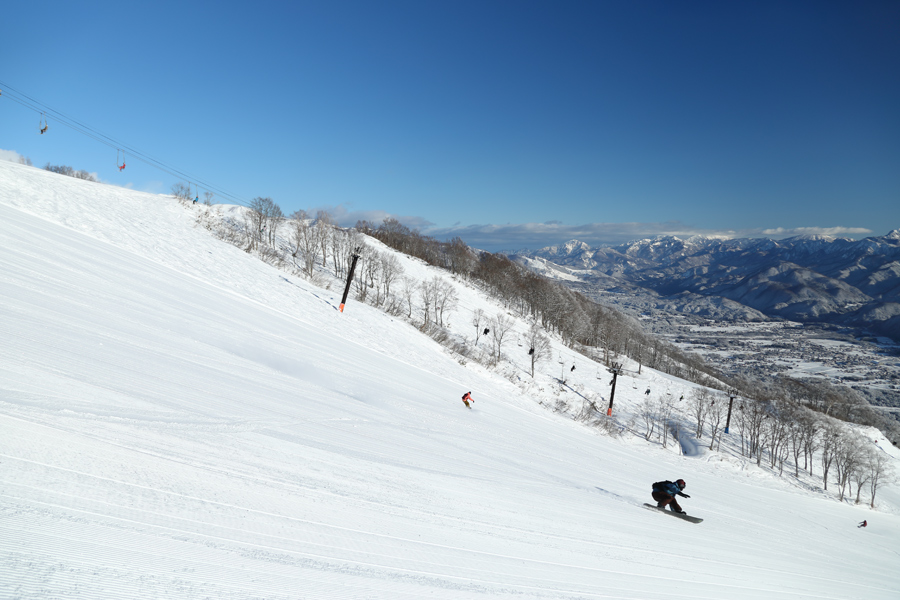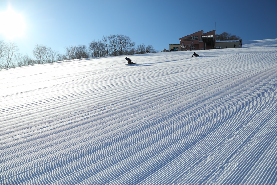 The Toomi Sky Four Lift also began operating yesterday, and thanks to strong radiative cooling overnight, this morning delivered ideal conditions for skiing. Just as the ski patrol promised when they told me, “Today’s grooming is excellent!”, the Panorama Course (photo) featured moderately firm, powder-packed snow that let my skis glide effortlessly, making for an exceptionally smooth and satisfying ride.