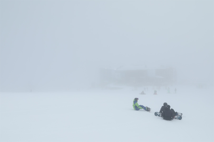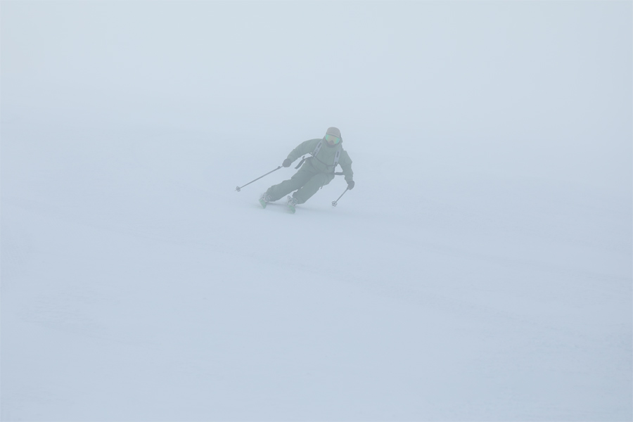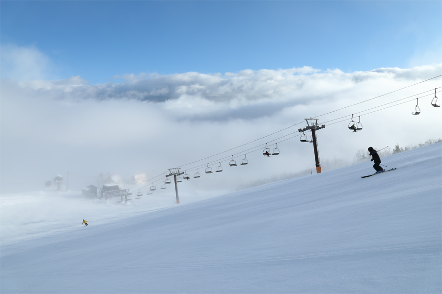 Afterwards, fog repeatedly rolled in and out at both Kurobishi (pictured) and Usagidaira. On the ungroomed sections beside the Alpen Quad and the Kurobishi 3 Pair, there was around 3 to 5cm of light new snow. The Panorama Course had about 1cm of new snow, and was featured a firmly packed groomed powder surface (with a bit of wet-snow on only the very bottom section.)
