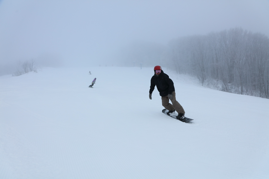 The groomed section of Tsuga-no-mori, lightly dusted in places with 1 to 2 cm of fresh snow, was firm and well set overall. Once I started skiing, it was easier to see the snow surface than I had expected and visibility was better overall than anticipated, which meant that while most visitors were lapping the gondola, I was able to enjoy wide-open, relaxed turns on the quieter Tsuga-no-mori during the morning hours.