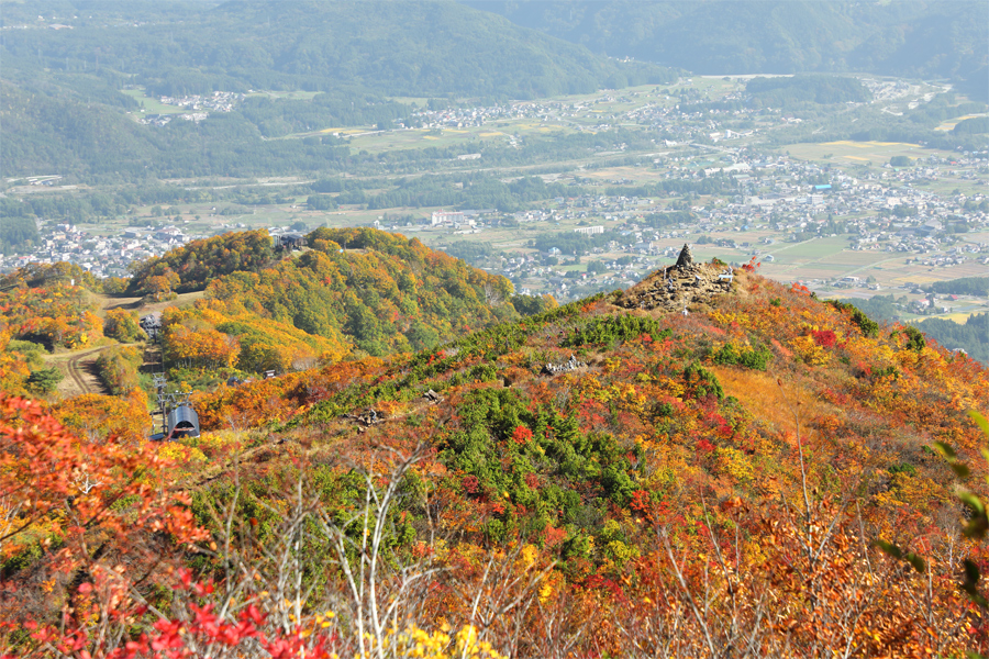 見返り坂からの地蔵ケルン周辺とHakuvba47方面(写真)も鮮やか。昨日に強い雨が終日続いたため「落葉してしまったのでは」と心配しましたが、そこまで大きなダメージはありませんでした。快晴の空のもと小遠見山山頂に足取り軽く向かいました。