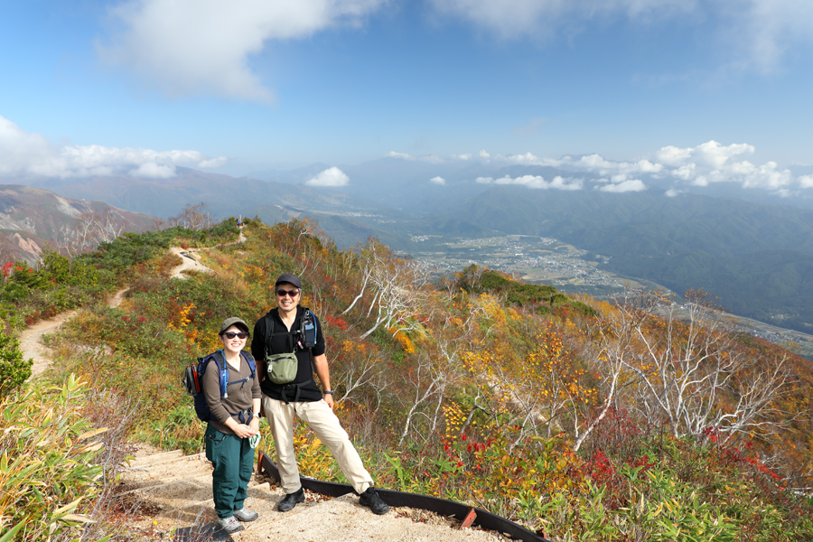 安曇野市からのご夫婦(写真)が「いつも見てます。初めて小遠見山まで登って来ました。とてもきれいで素敵なところですね!今日は行けるところまで行ってみようと思います。」とお話くださいました。晴天予報もあってか10時半の小遠見山山頂は結構な賑わいでした。