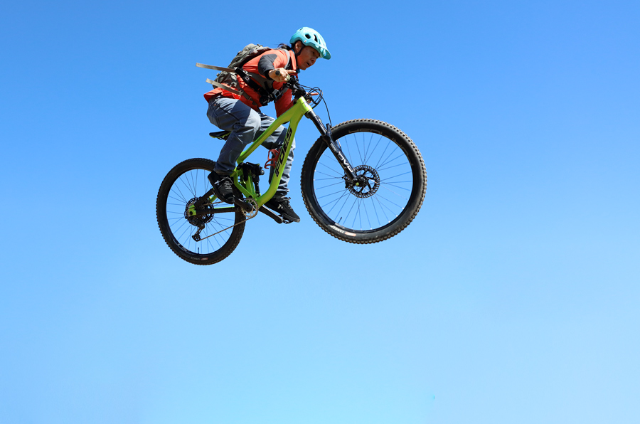 澄み切った青空と爽やかな空気、”秋晴れ”と呼ぶにふさわしい晴天に恵まれました。旧ゴンドラの工事の関係でスタート部分が少々変わっていますが、白馬岩岳 MTB PARK は好コンディションでオープン中! アルプス(全長6.9km)、カミカゼ(全長3.7km)両ダウンヒルコースを走る姿が数多く見られました。