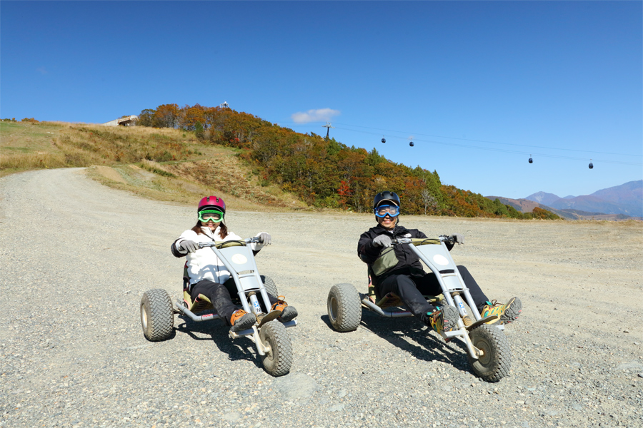 サウスゲレンデはマウンテンカートでも回せます(※MTBのヒトトキダウンヒルとは違うルートです)。兵庫県からのお2人(写真)が「昨日、初めて唐松岳に登って来ました。マウンテンカートはめちゃめちゃ楽しいですね!今日はこれから 白馬ジャイアントスウィング も試したいと思います。」とお話しくださいました。