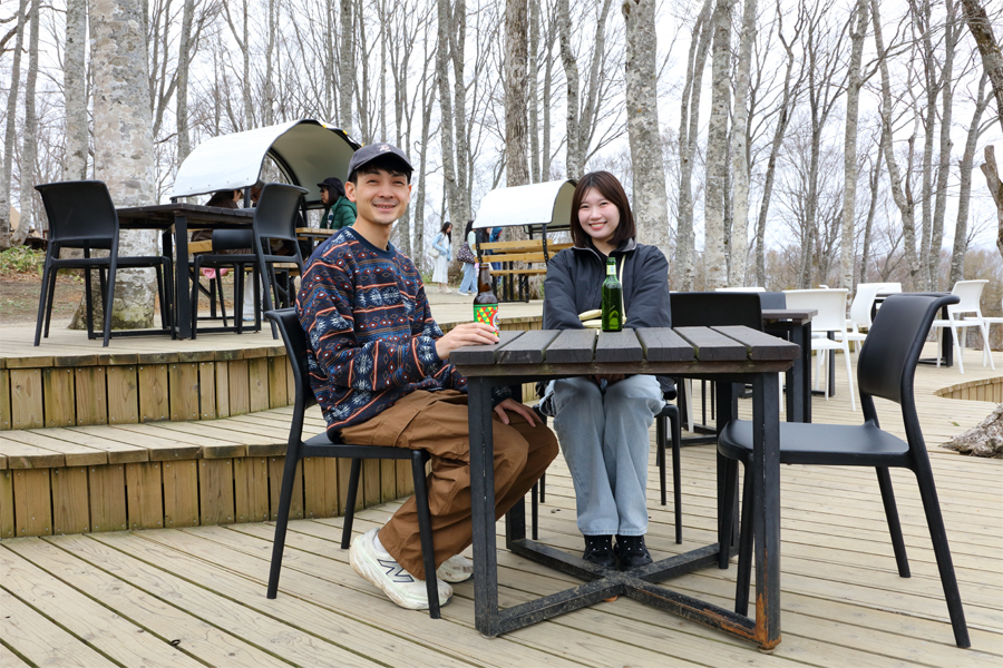 福島県からのご夫婦(写真)が「どこに行くかと考えた結果、日帰りで岩岳になりました。帰りに温泉に立ち寄る予定です。」とお話くださいました。4/25(土)のゴミ拾いを行う環境イベント「ゲレンデ Clean Act」では参加者に夏季招待券が贈呈されます(※参加費無料、ゴンドラ往復乗車無料、先着50名)。また、GW中には「お子様向けVR体験イベント(※参加費無料、4/29~5/6)、「絶景手ぶらリラックスヨガ」(※参加費無料、5/2~5)が行われます。