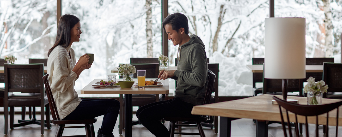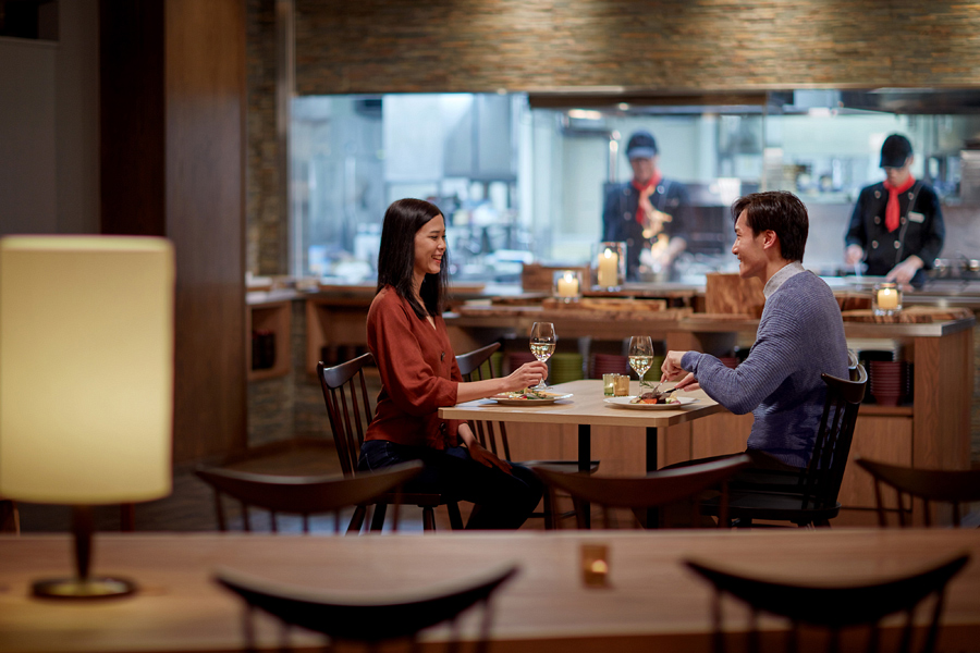 「LAVAROCK」「PRESTIGE」「TASTE」の3コースは、季節ごとにメニューが変わります。食材の選定から火入れ、焼き上げまで、シェフこだわりのグリル料理を主としたフルコースとなります。朝食は和洋様々なメニューが豊富に並ぶブッフェスタイル。シェフが目の前で作る卵料理や、信州ならではのローカルメニューも人気です。