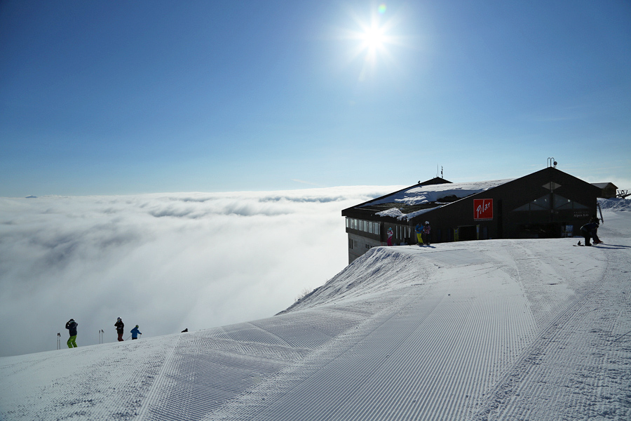 八方・アルペンクワッド終点、標高1,680mの黒菱平に佇む天空のレストラン&カフェ。カフェではホットドッグやピザ、サンドイッチやカレーなど、サッと食べられる軽食とコーヒーなどのドリンクを。奥のレストランでは地元の食材をふんだんに使った本格派ヨーロピアンのコース料理を。美しい白銀が煌めく雄大な白馬三山の景色を眺めながら、ゆるやかなひとときをお過ごしください。 ※レストランのご予約はこちらから