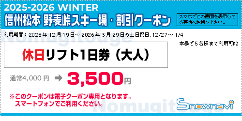 電子券 → 休日大人1日券4,000円 → 3,500円!
