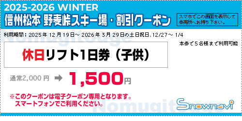 電子券 → 休日子供1日券2,000円 → 1,500円!