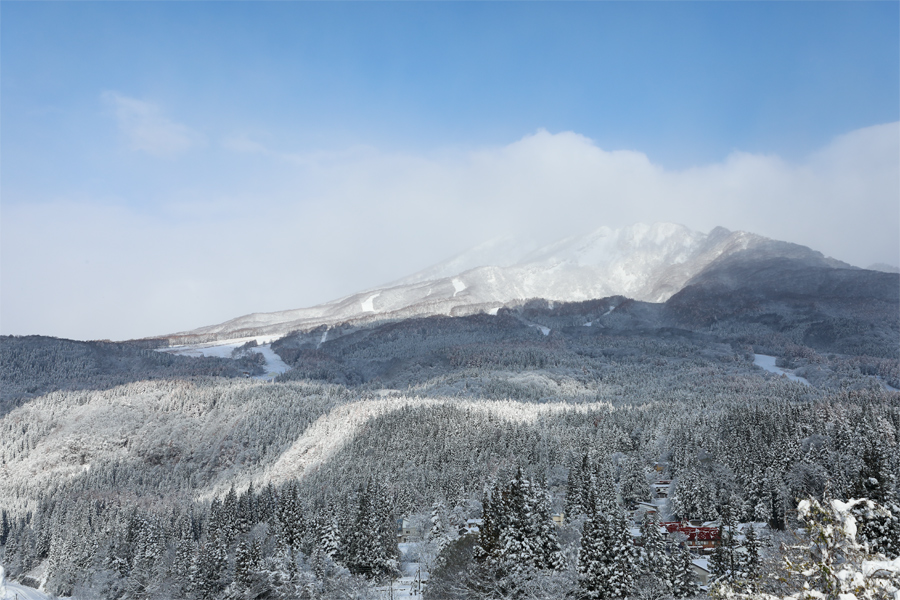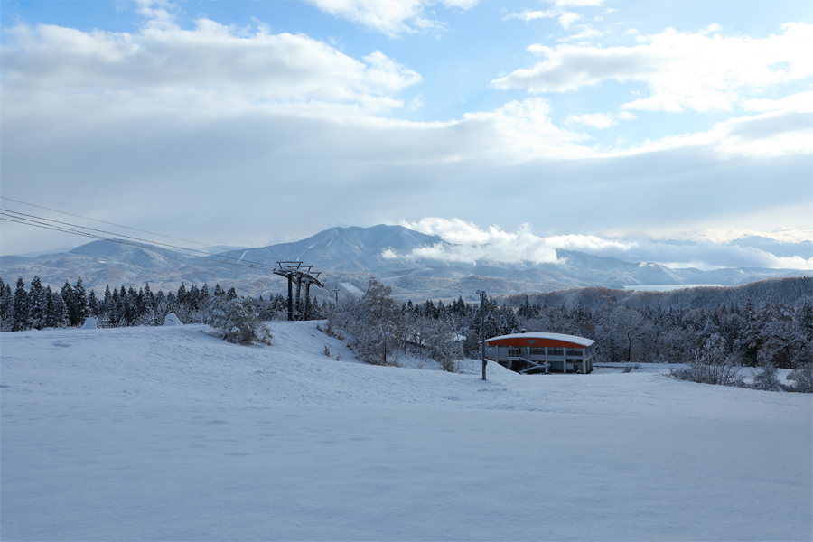 日本列島への今季一番の寒気の流入により、妙高エリアでは昨日に雪が降り始めて、11/19(水)の朝には麓まで白く染まりました。周辺の道路にも少し積雪がありましたが、スタッドレスタイヤを履いていれば問題なし。8時頃までチラチラと舞っていた雪が止んで青空が広がり始めました。