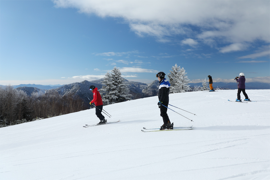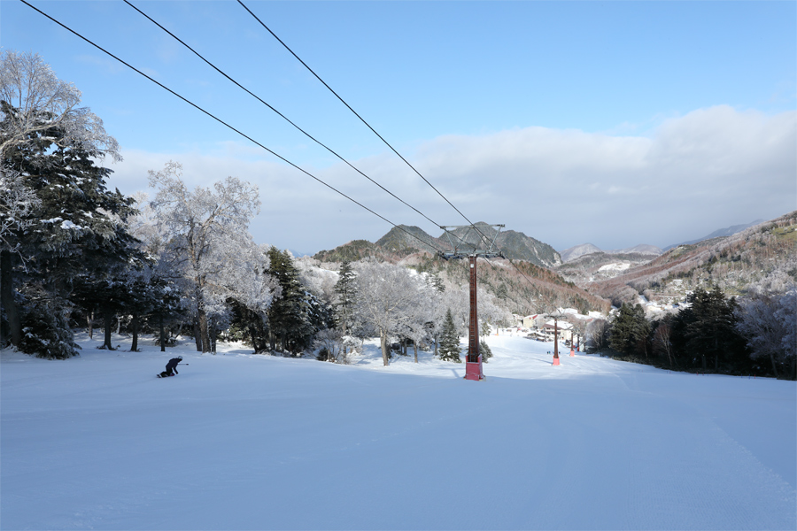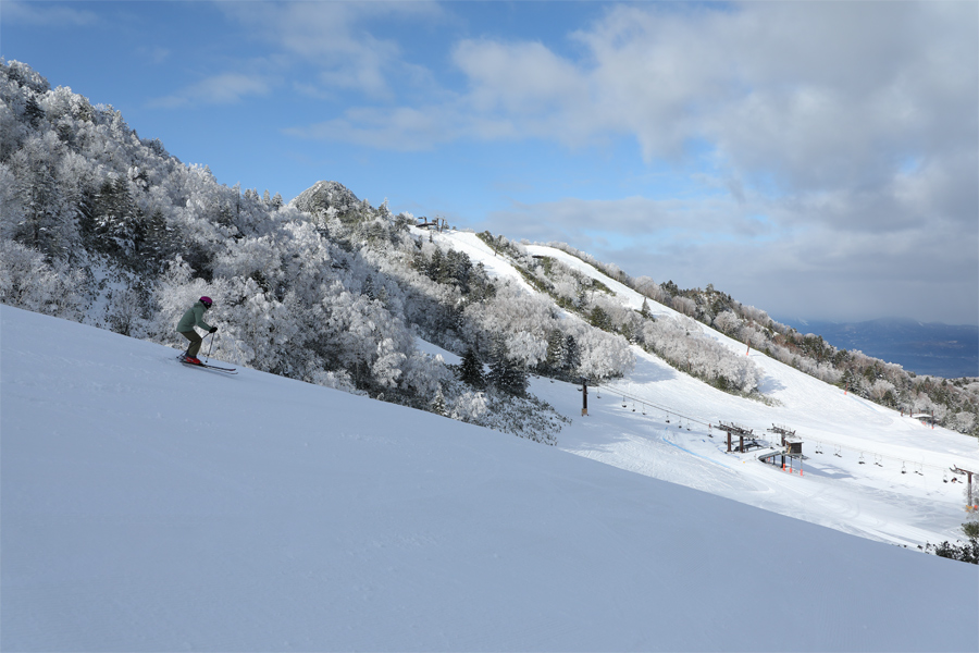 第2ペア沿いの第2初級と第3初級も適度に締まった粉雪の圧雪。エッジの噛み、板の走り共に良くて、緩斜面ながらスピードに乗れました。ここでお会いしたスノーボーダーさんが「志賀高原で働いています。カービングが決まってとても気持ちがいいです。」とお話くださいました。