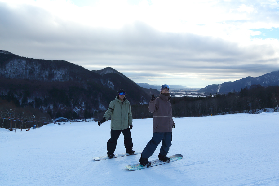 HAKUBA VALLEY で4番目となる12/12(金)に第1ペアが動き出してエコーゲレンデ(写真)が滑れるようになり 爺ガ岳スキー場 の冬が始まりました!千曲市からのお父さん(写真左)が「いつも見てます。HAKUBAVALLEY のシーズン券 ホルダーです。爺ガ岳は今シーズン初めて滑りに来ました。」とお話しくださいました。