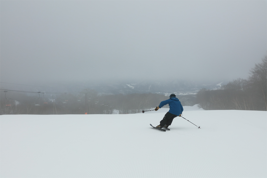 ハンの木ゲレンデではハンの木高速ペア沿い(写真1枚目)だけでなく、中盤(写真)から終盤にかけても圧雪が入って、一本通しての滑走満足度が格段に増しました。また、ハンの木第3クワッドを使って、沢コースを含め中斜面部分だけを繰り返し楽しむこともできるようになりました!