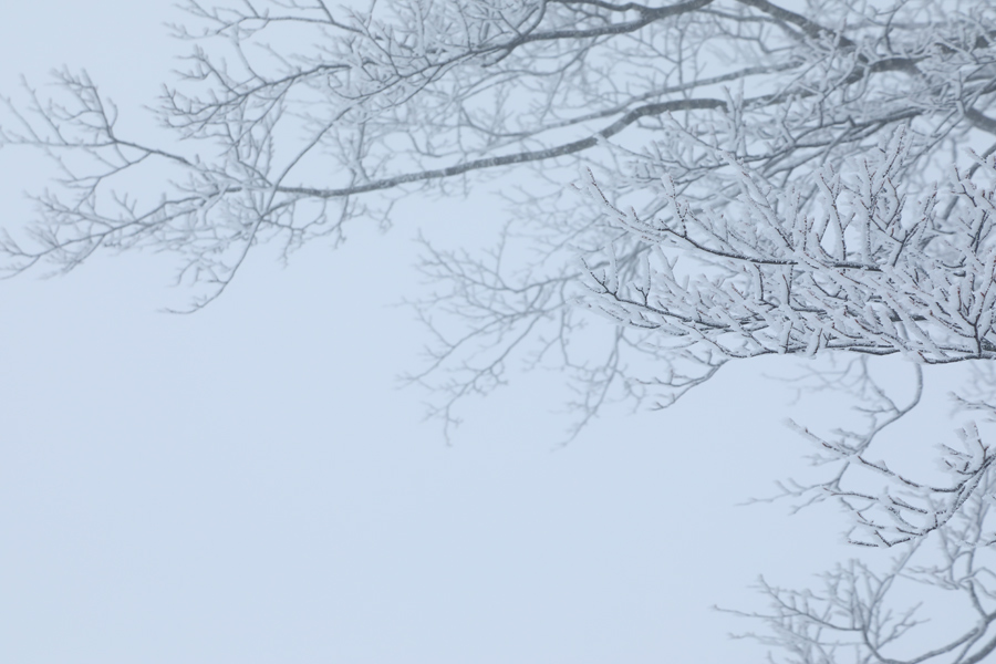 冬型の気圧配置への移行に伴って昨日の午後に降っていた雨が今朝未明に止み、冷え込みが少し戻りました。乾いた雪舞う中、スキー場上部の木々が霧氷に染まった朝。Line-C をご一緒した山梨県からのスノーボーダーさんが「いつも見てます。冷え込みが戻って良かったですね。」とお話しくださいました。