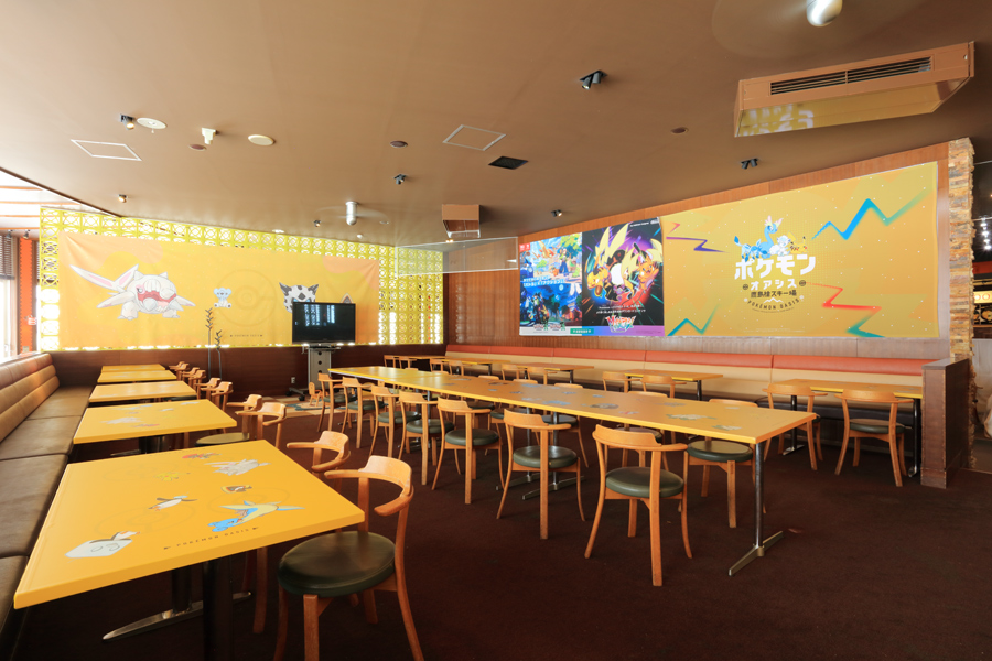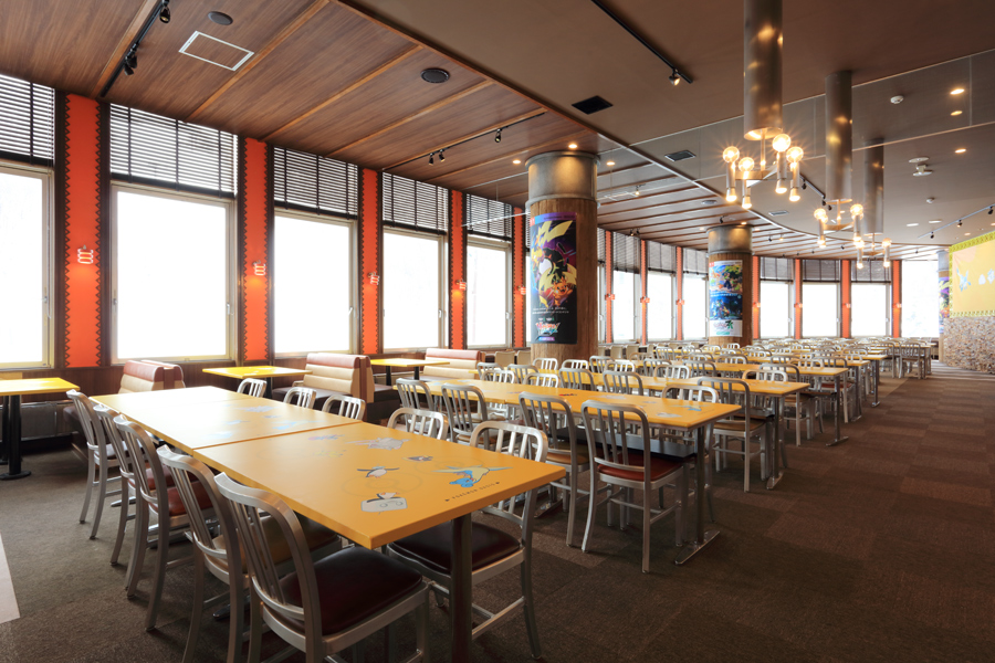 セントラルプラザ1130西館の2階にあるメインレストラン「レッドシーダー」(写真)では、テーブルにポケモンたちがラッピングされています(※一部のテーブルを除く)。また、ここでは長野県のソウルフードの山賊焼きをトッピングした「山賊カレー」(1,600円)と「山賊タルタル丼」(1,500円)も頂けます。