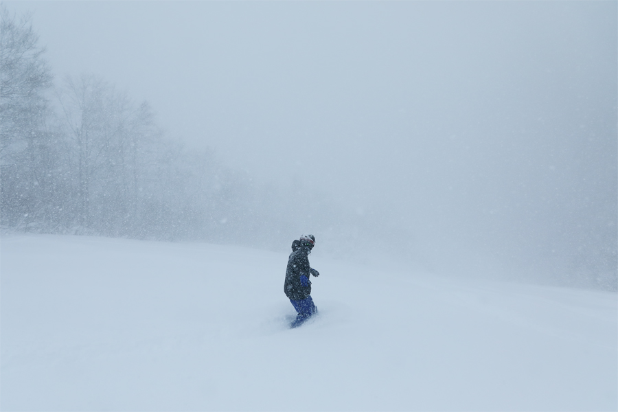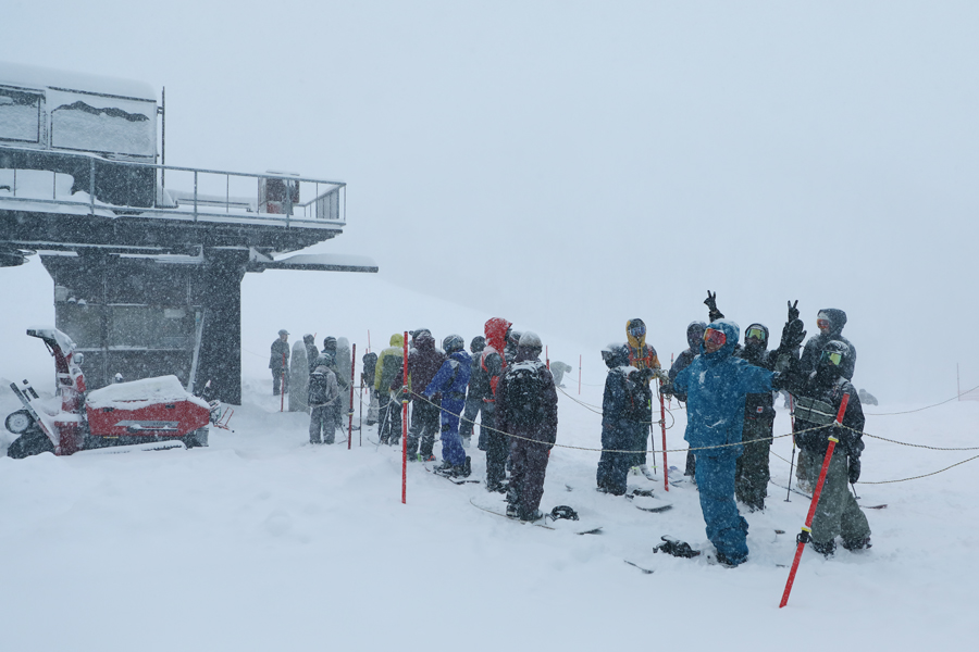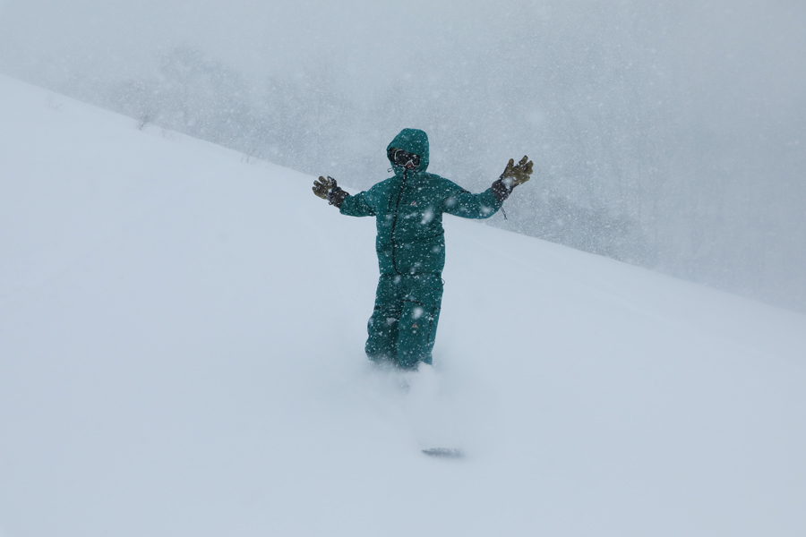 それにしても今朝はガスと降りしきる雪で視界が真っ白…。鉄工房 村の鍛冶屋 の zamaaan さん(写真左)が「今日は最高だね!」とお声掛けくださいました。その zamaaan さんも毎年参加される「JAPAN FREERIDE OPEN」は2/7(土)と2/8(日)に開催されます(※2/9は予備日)。