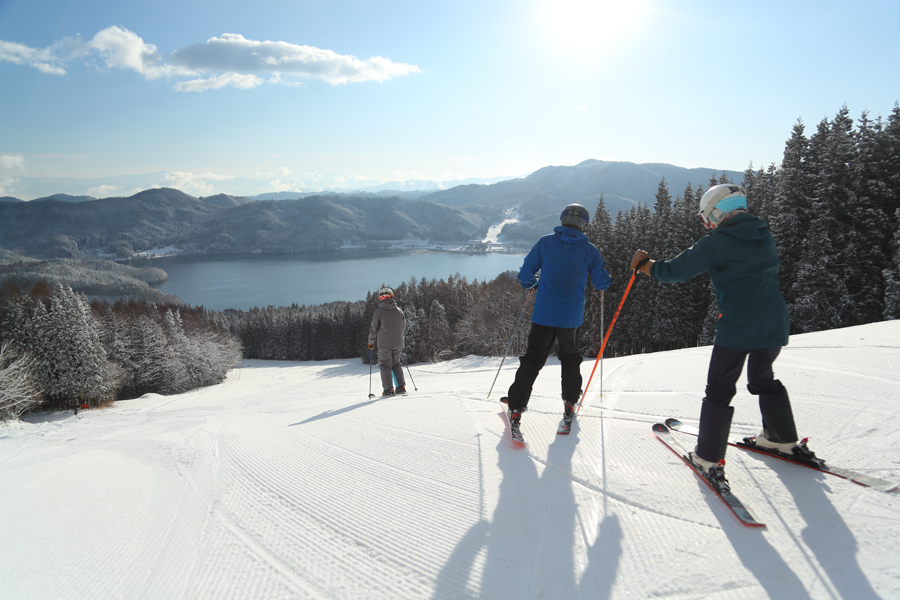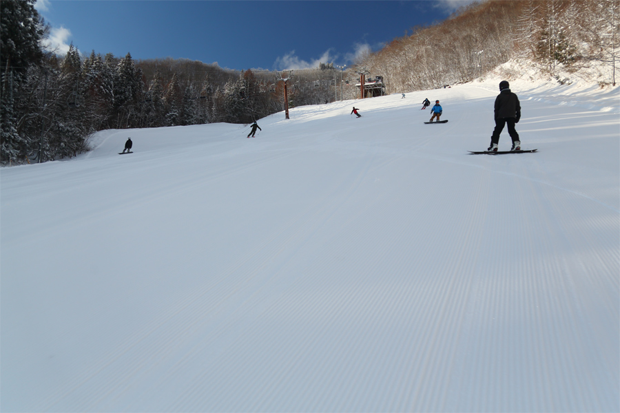 レイクダウン(写真3枚目)、レイクビュー(写真)も適度に締まった粉雪の圧雪。柔らかな起伏に軽い新雪が約10cm乗った非圧雪のニューパラダイスでは、フカッとした感触を楽しみました。年末らしい出足の早さで、9時半現在、第1駐車場と第3駐車場が満車で、第2駐車場の半分ほどが埋まっていました。