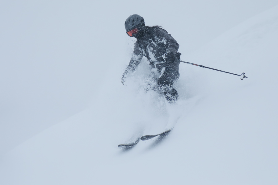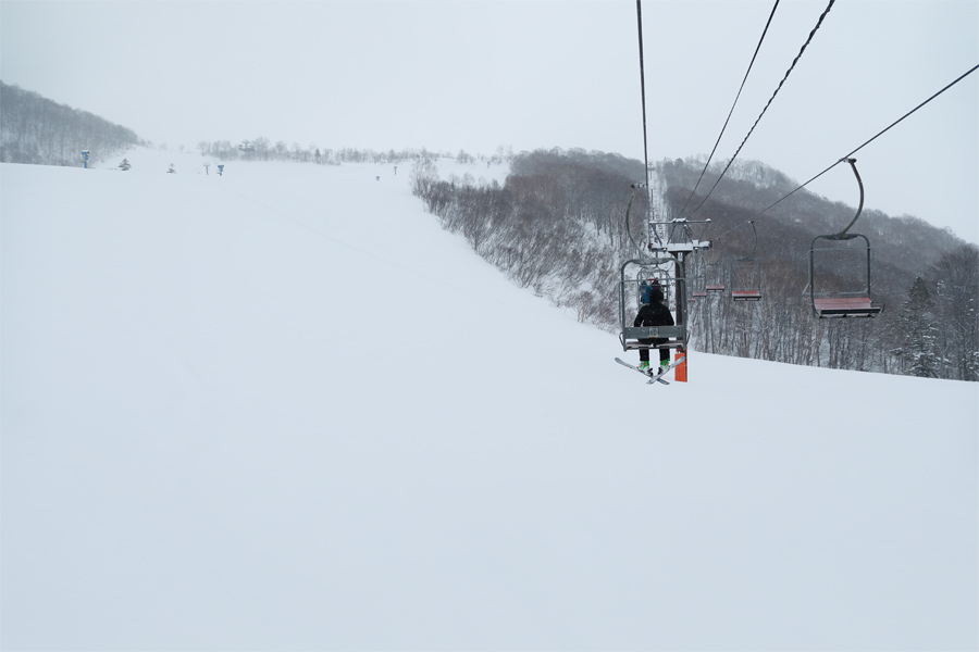 そこには約30cmのフカッとした新雪が!予想以上に多い新雪の量と質の良さに一気に気分が上がりました。「いつも見てます!思ったよりいい雪で気持ち良かったです。でも、終盤で急に雪質が変わったので驚きました。」とはハンの木第3クワッドでご一緒したスキーヤーさん(写真1枚目)。滑り降りて行くと、適度に締まった湿雪の圧雪のハンの木終盤でトッピングされた新雪が重くなり、ターンしづらくなりました。