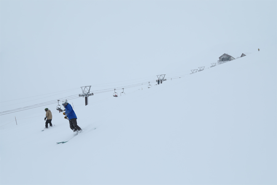 グラートクワッドが12/27(土)に登山・観光用として動き出し、元日からはリーゼングラートコースが滑れるようになりました!適度に締まった粉雪の圧雪部分には軽い新雪が約5cm。後半のスキーヤーズレフト(写真奥)の適度に締まった起伏には新雪が約10cm積もっていました。