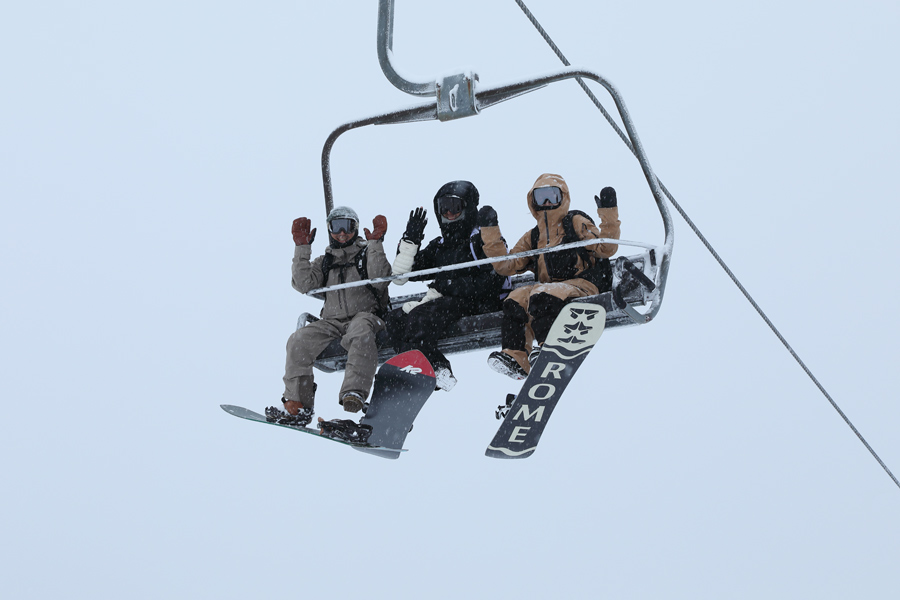 「いつも見てます!Snownavi さん、あけましておめでとうございます」とお声掛けくださったのは黒菱第2クワッド乗車中の3名様(写真)。他にも数多くの「あけましておめでとうございます」と合言葉「いつも見てます!」を頂きありがとうございました。適度に締まった粉雪の圧雪に軽い新雪が3~5cm乗った黒菱第2クワッド沿いでも快適にターンを繰り返せました。