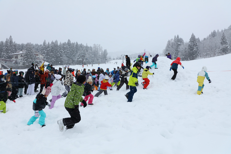 1/2(金)に いいもりベースセンター 前で「2026 謹賀新年イベント」が行われました。9時から「場内ラジオ」が始まり、10時の鏡開きの後、御神酒と紅白餅が振る舞われました。11時からの「雪上宝探し」(写真、※小学生以下の子供が対象)には多くの子供たちが参加しました。
