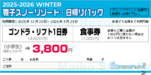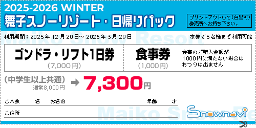 *運行リフト … 舞子ゴンドラ(8:30~)ほか全9基