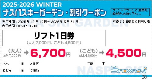 *料金 … 1日券 大人7,000円、小学生以下4,800円