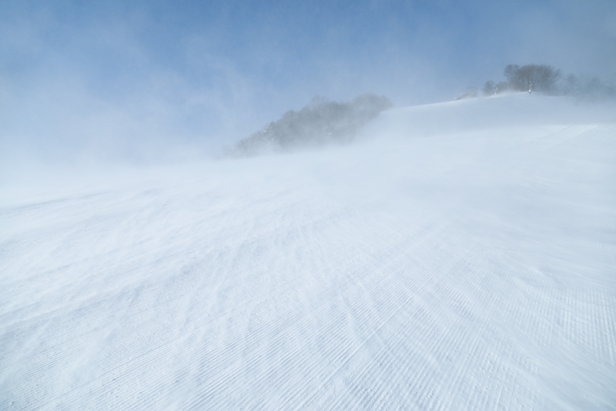 リーゼン終盤(写真)は良く締まった粉雪の圧雪、名木山は良く締まった湿雪の圧雪。人工降雪機周辺が硬めだった名木山・パブリックコースをエッジを効かせて滑りました。東京都のスキーヤーさんが「名木山の壁は、新雪20~25cmが風でパックされていましたが下地に起伏が少なくて楽しめましたよ。」と教えてくださいました。
