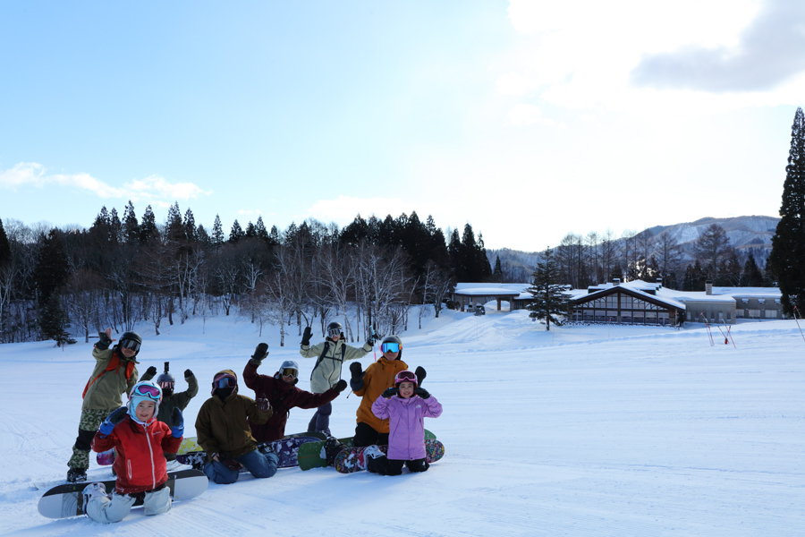 「いつも見てます!毎年の恒例行事で、会社の同期とその家族で白馬エリアに滑りに来ました。一昨日は鹿島槍、昨日はつがいけ、そして今日はさのさかで楽しみます。」とは石川県、東京都、松本市からの皆さん(写真)。尚、写真奥に見えるのがスキー場のオフィシャルホテル「WHITE HOTEL GARAND HAKUBA」です。