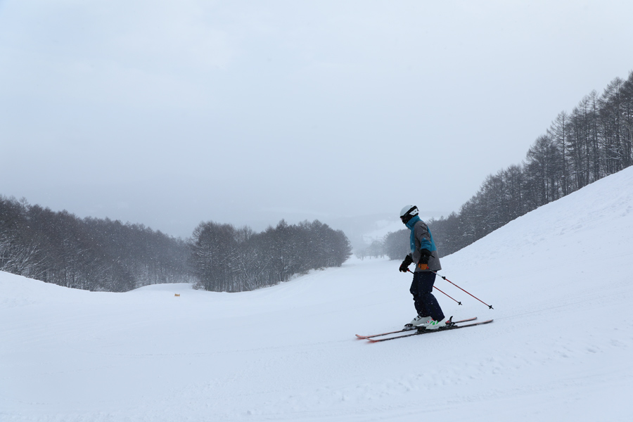 1cmに満たない湿った新雪が乗った Leo と Monkey(写真)は良く締まった湿雪の圧雪バーンでした。ところによっては少しブレーキがかかることも。青空が見えて薄日が差したのは一時だけで、その後日中にかけて再び強まった雪と風がピステン跡を埋めて行きました。