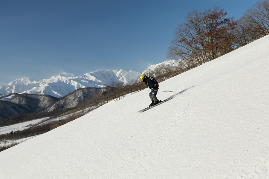 北アルプスの稜線で風が雪を大きく巻き上げる様子をゲレンデからも望めました。朝一のハイウェイ(写真)、カモシカ両コースもよく締まった湿雪の圧雪。兵庫県からのご家族が「いつも見てます!1/25(日)の ちゃんめろフリーライド にこの子(写真)が出るので、今日と明日で行われるキャンプに参加しに来ました。」とお話しくださいました。