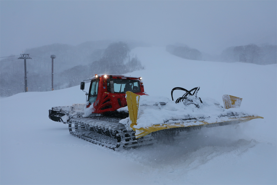 小谷村在住のスキーヤーさんが「今シーズンで一番楽しみな日になりました。今朝は DBD でしっかりパウダーを食べて来ます。」とお話くださいました。ライブカメラ を確認すると、特に日付が変わってから明け方にかけて雪がよく積もった模様。白樺ゲレンデでは圧雪車による整備が営業開始直前まで行われていました(写真)。
