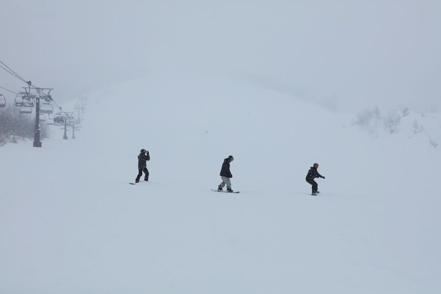 お目当てのチャンピオンクワッド線下(写真)の非圧雪エリアにはフカフカの新雪が30~40cm!減速すると硬い下地に当たりましたが、浮遊感を満喫できました。レポーターと同様に皆さんのテンションも高く、リフト上から数多くの方が手を振ったり、お声掛けくださいました。