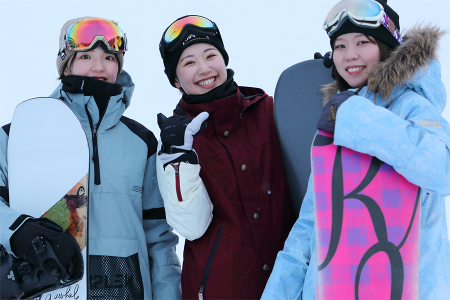 長野県松本市からの女性(写真中央)が「Snownavi は見たことあるかも。鹿島槍には6日ぶりに滑りに来ました。…あ、それから、私のスマホでも撮ってもらえますか?」とお話しくださいました。また、1本滑った後に「今日のバーンは硬めですね。転ばないように気を付けないと。」ともお話しくださいました。