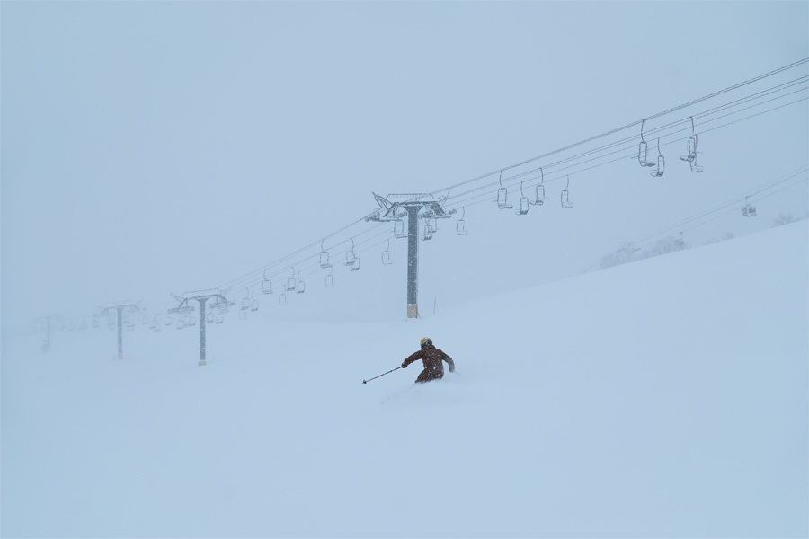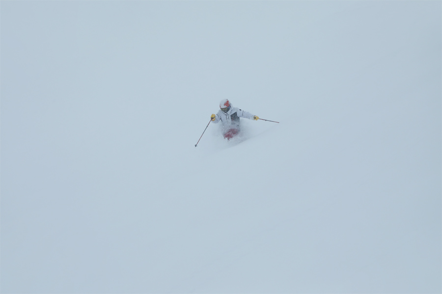 「最強最長寒波が白馬にようやく本気を出して来てくれましたね。」とは駐車場でお会いしたスキー場のスタッフさん。兎平ゲレンデでは風がほぼない中、乾いた雪が密度濃く降っていました。パトロールさんの「ガスって雪面が見づらいですが今日はいいですよ!」とのお声掛けもあって滑る前からワクワクしました。