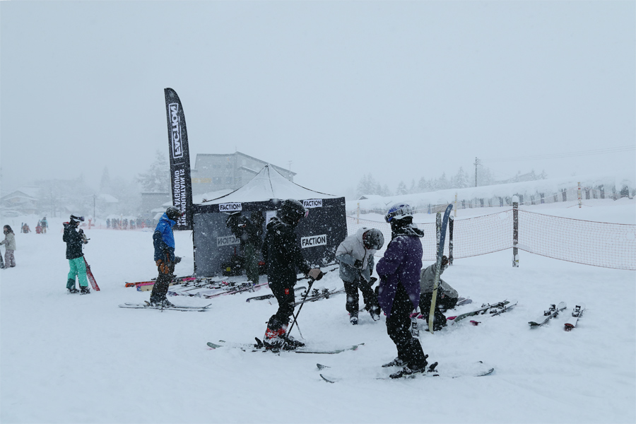 名木山ゲレンデでは今日と明日に「FACTION SKIS 試乗会」(※9時~、参加費無料、要身分証)が行われています。「パウダー系とフリーライド系を中心に来季モデルを約30本持って来ました。この雪の中で是非試乗してみてください。」とはスタッフさん。今晩からの毎週土曜にはここで「5週連続花火」が行われます!(※5週目のみ2/20(金)で「火祭り」です)。