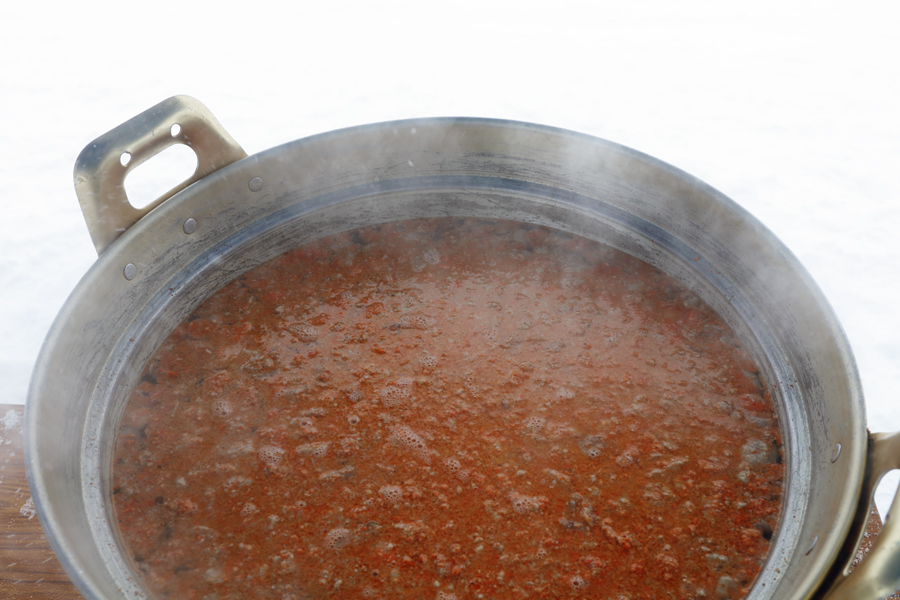 解体後は「あんこう汁」(写真、600円、公式インスタ のフォローで半額)と炭火焼のゲンギョの干物(300円)が販売されました。雪降る寒い中、人気のあんこう汁は独特の色合いでしたが、出汁が効いてとても美味しかったです!こちらのイベントは次回2/21(土)に2回目が予定されています。