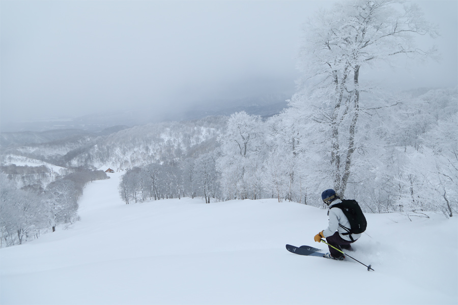 適度に締まった粉雪の圧雪のやまびこD(写真)とやまびこEでは思い通りのターンを切れました。平日ながら沢山のパウダーフリークでやまびこエリアは大盛況。お会いしたドイツとニュージーランドからの3名様が「野沢温泉のパウダースノーは最高だね!」とお話くださいました。