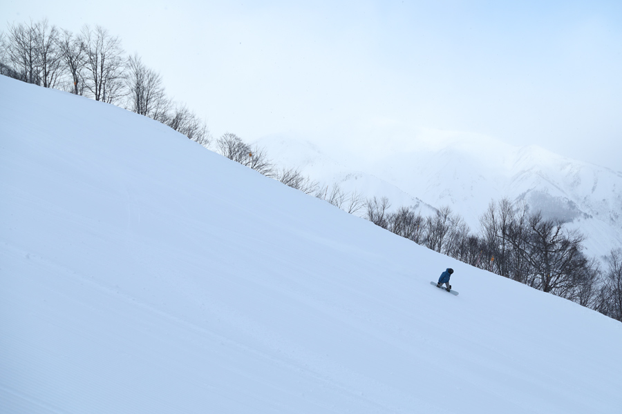 日陰になる時間が特に長い圧雪のルート8下部(写真)は程よい締まり具合の粉雪コンディション。初級者から上級者までが楽しめると思いました。1/22(木)にリニューアルオープンしたルート4の 47PARKS については、近々特集レポを組みたいと思います!