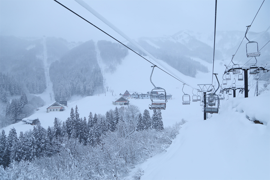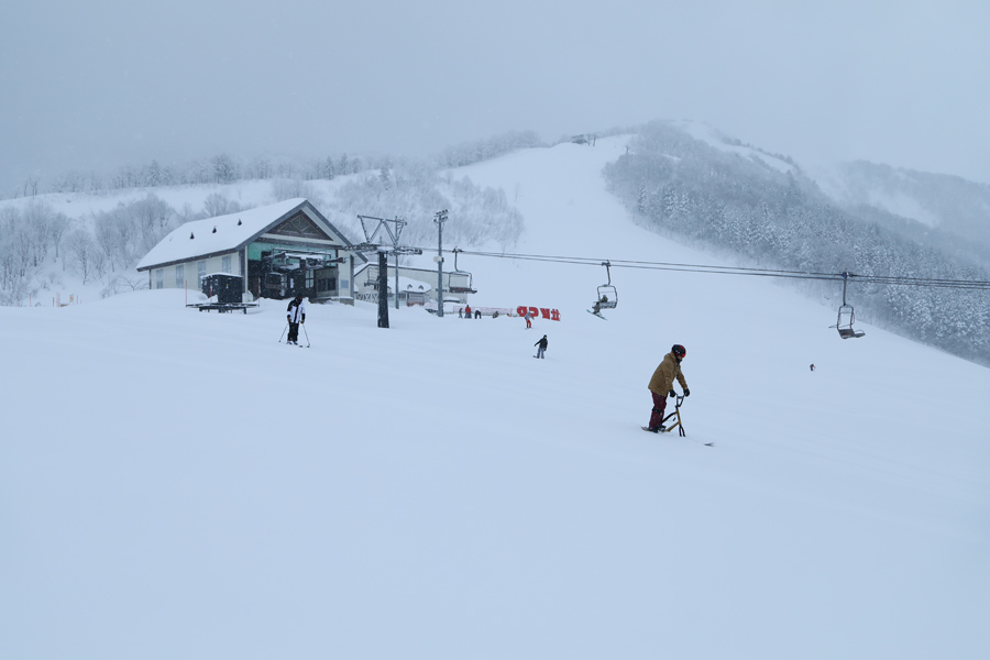Eリフトのリフトマンさんが「昨日は風がなかったので雪が良く積もりました。今朝はここで30cmくらいあります。」、また、千葉県からのお2人が「雪道を出来るだけ運転したくないので湯沢インターから一番近いここに良く来ています。」とお話しくださいました。朝からの雪が取材を終えた10時頃にさらに勢いを増しました。