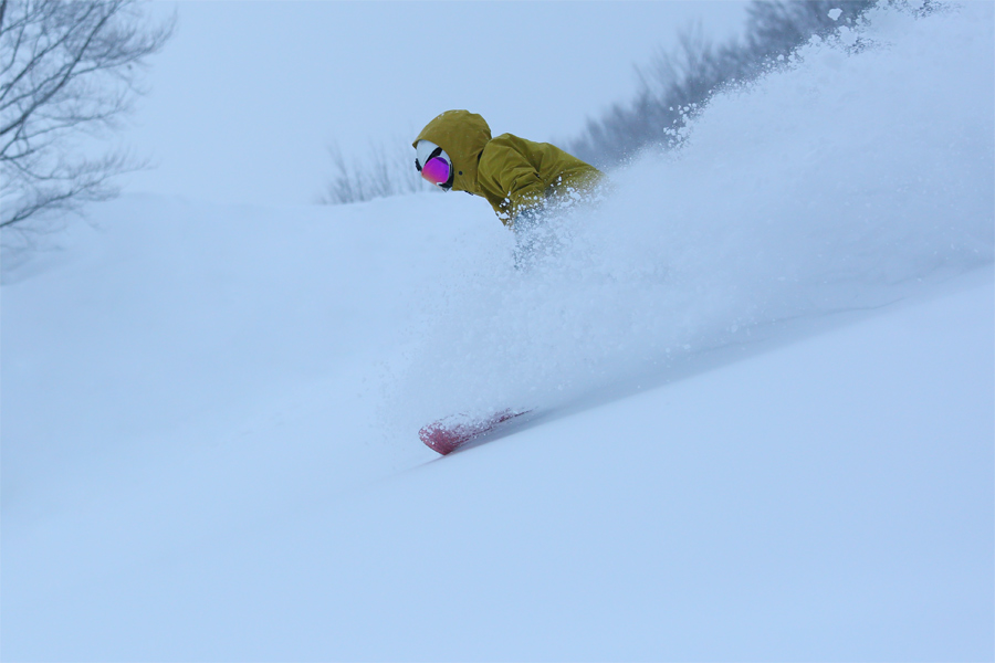 軽い新雪が20~30cm積もったヘラクレスでは、トントンと底に当たりつつ、板の面を意識して直線的に滑りました。「Snownaviは見たことあります。フカフカでしたね!」とは静岡県からの女性(写真)。様々なリフト割引サービスがある 神立 の「平日限定レディースデイ」は1日券に 神の湯 or クレープ と オリジナルフェイスパックが付いて3,500円と超お得です。