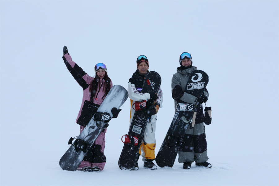 新たにやって来た寒波により、-12℃(!)と強く冷え込んだ朝でした。タイからの3名様(写真)が「毎年日本に来ています。今回は2週間のうちの1週間、白馬に滞在します。白馬さのさかは以前にも来たことがあり、空いていて滑りやすくて気に入っています。」とお話くださいました。