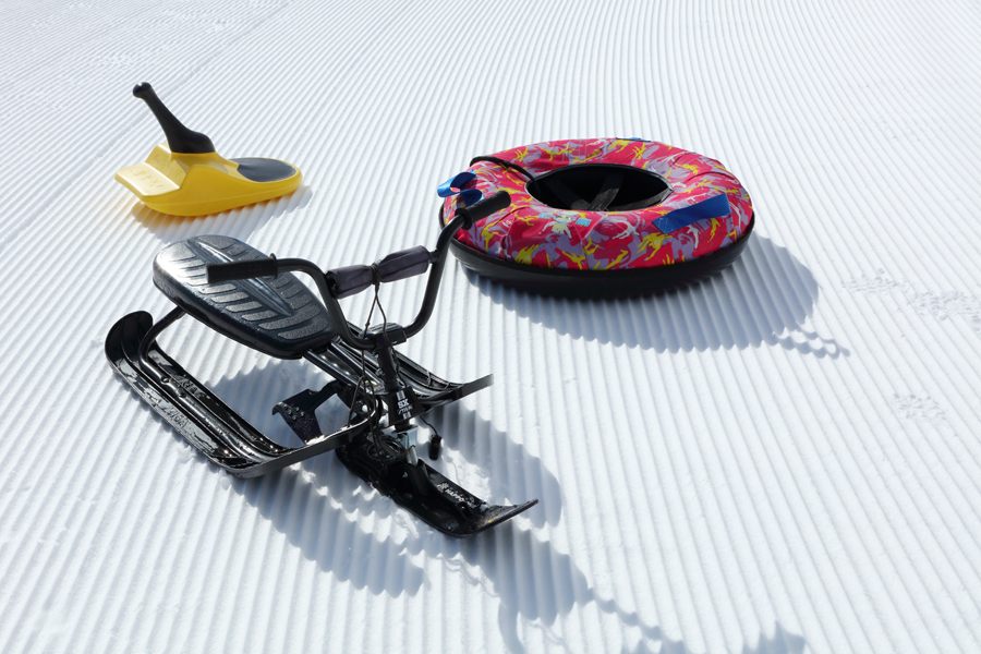 ムービングベルトを挟んで反対側(東側)にあるソリゲレンデ(写真)ではプラそりはもちろん、ハンドル付の各種そり、チューブ、雪遊び道具などが自由に使えます。麓には小さなふわふわ遊具もあって、様々な年齢の子供たちが飽きずに楽しめるようになっています(※なきやまスノーランドの入場料は大人、3歳~小学生とも1,500円)。