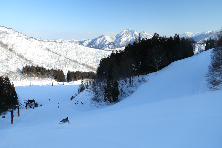2度の大寒波が過ぎ去り、昨日、今日と快晴、無風の滑走日和に。今日2/5(木)はCリフト運休の代わりにDリフトが動きました(※ミルキーウェイとスーパーアンタレスはクローズ中)。幅広く圧雪が入ったアンドロメダ(写真)は粉雪が適度に締まった滑りやすいコンディションでした。