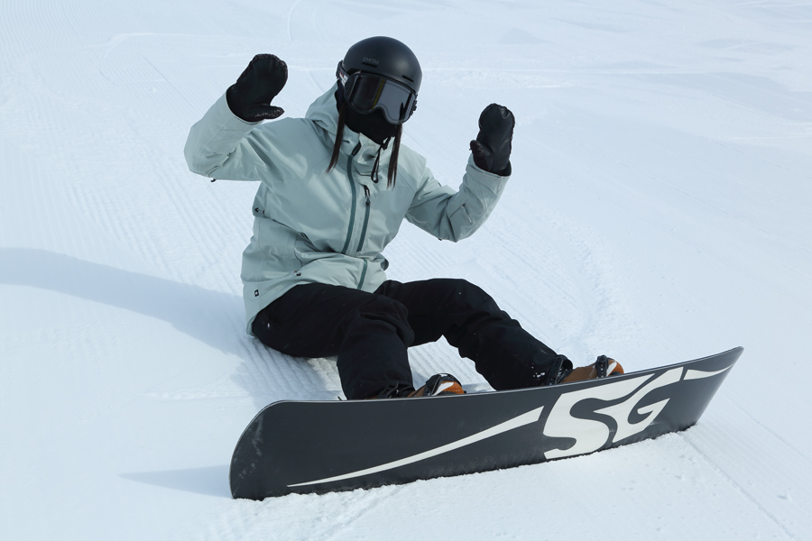 「いつも見てます。圧雪が丁度よい締まり具合で滑りやすいですね。いつもは友達と滑りに来ていますが今日は一人です。」とは松本市からの女性(写真)。1-A終盤のスキーヤーズレフトの非圧雪部分にはフカッとした新雪が約10cm積もっていました。