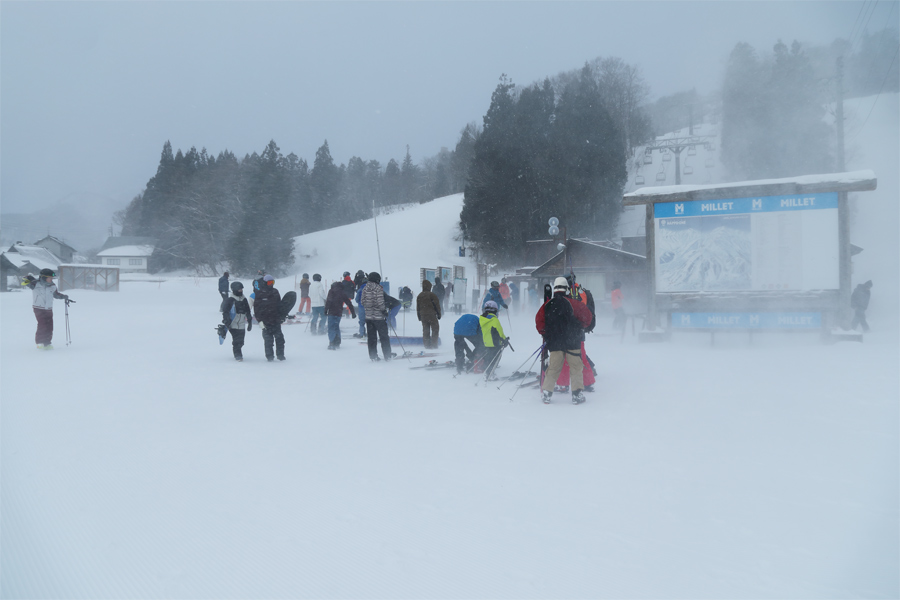 ハイシーズンらしい厳しい寒さが続きます。等圧線の間隔が狭い冬型の気圧配置と、ライブカメラ で見る上部ゲレンデの様子から「風が強い」と置いて名木山ゲレンデ(写真)へ。常連の男性が「今日は名木山で正解だね。これくらいの風なら名木山トリプルと八方リーゼンクワッドは動くと思いますよ。」とお話しくださいました。