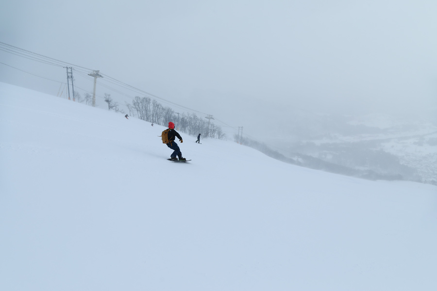 白樺ゲレンデと名木山ゲレンデも良く締まった湿雪の圧雪。軽い新雪が斑に0~2cm乗ったバーンで快適にターンを繰り返せました。このあと風が収まって行き、国際第3ペアが9時頃に、パノラマペアが9時20分頃に、ゴンドラが10時半頃に動き出しました。